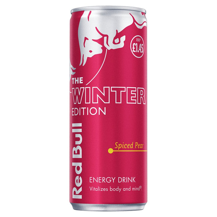 Red Bull Winter Edition Spiced Pear Energy Drink with the taste of Spiced Pear. Ready for winter? Red Bull gives you wiiings. This special edition Red Bull provides a unique taste experience for winter that will give you the energy and focus you need to power through the cold months.